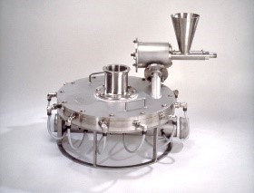 JET-O-MIZER(粉砕、微粒化システム) JET-O-MIZERは、垂直方向回転のジェットミルで、接線方向の粉砕 ノズルが下部にあり、ローターを使用しない分級部が上部にあります。 乾燥粉末を平均1〜50ミクロンまで粉砕できるこのミルは、粒度分布が狭く、エネルギー消費量が少なく、さまざまな材料を簡単に供給できます。 |