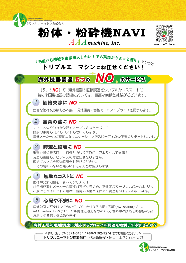 米国AAAmachineが、米国製粉体機器の直接調達をお手伝いします。